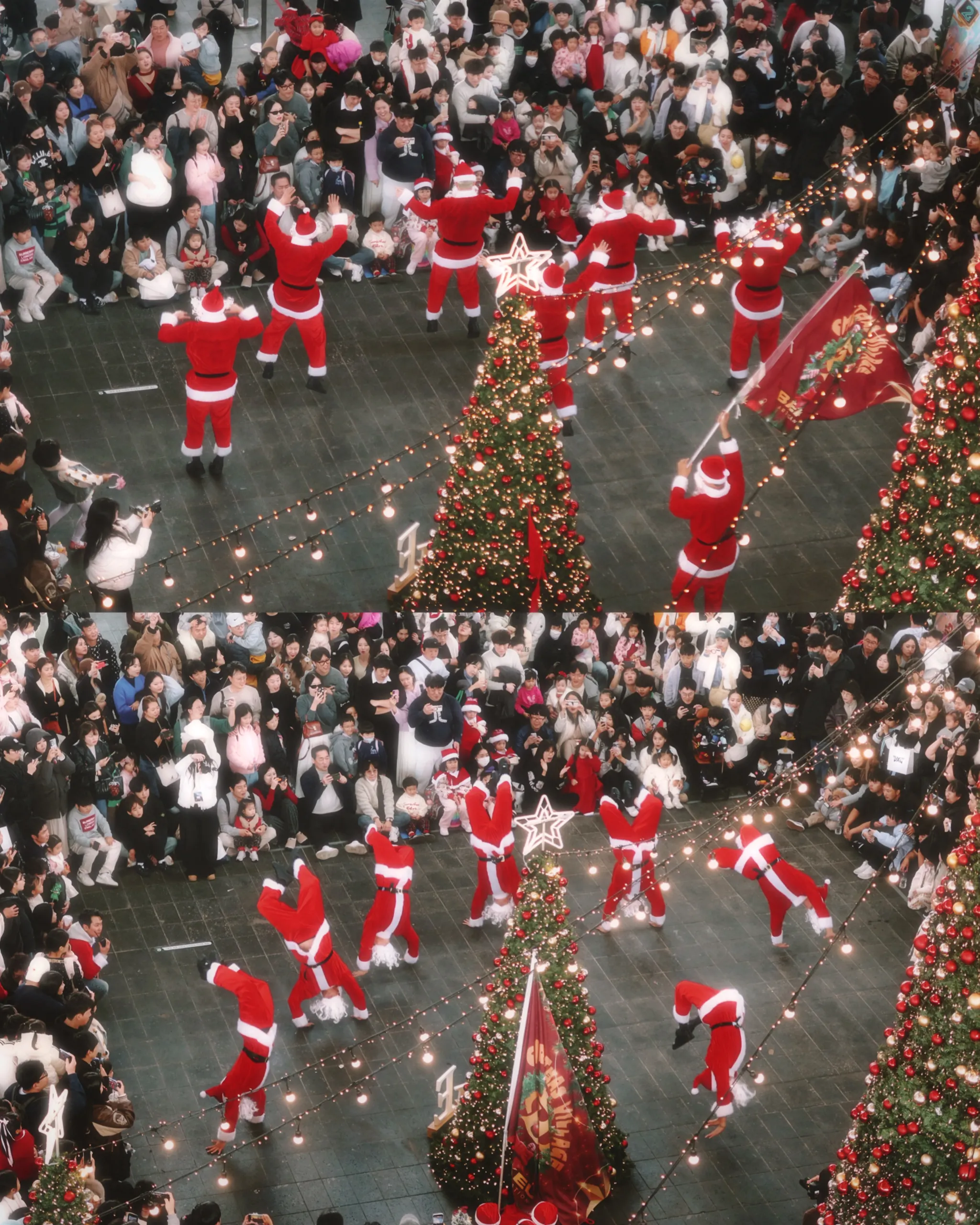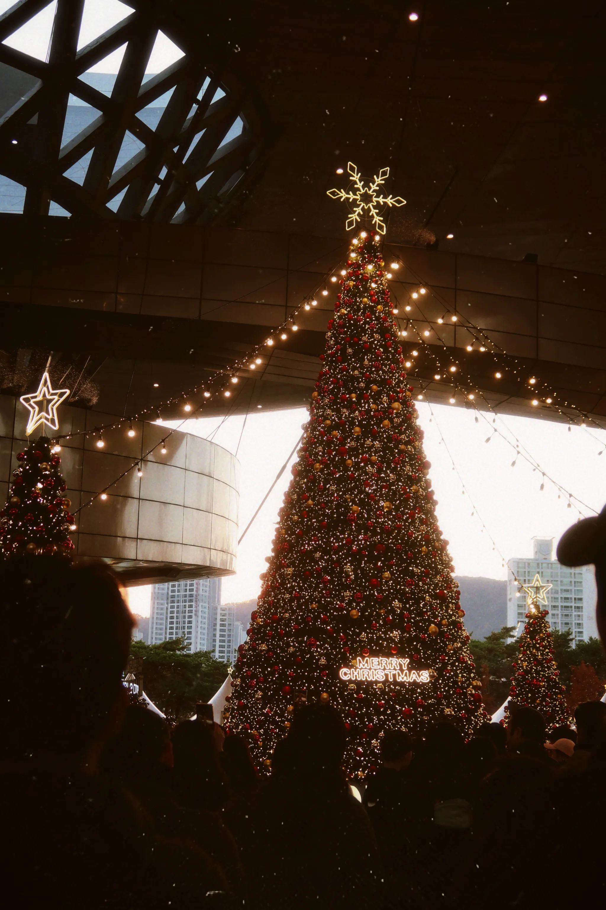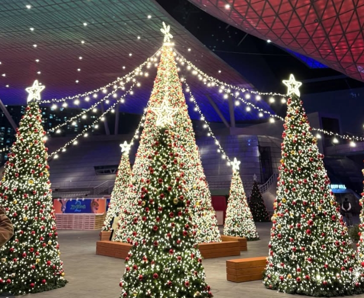 저녁 6시부터 조명과 음악이 어우러지는 퍼포먼스가 시작됩니다. 크리스마스 트리와 환상적인 조명들 속에서 감성 사진은 기본!